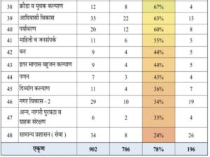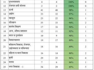 मुंबई : विधानसभा निवडणुकीनंतर राज्यात महायुती सरकार स्थापन झालं. यानंतर मुख्यमंत्री देवेंद्र फडणवीस यांनी शासनाच्या सर्व ४८ विभागांना १०० दिवसांचा धोरणात्मक कार्यक्रम आखून दिला होता. त्यात महत्त्वाची नवीन धोरणे, दूरगामी निर्णय आणि लोकाभिमुख उपक्रमांची आणखी सुरू केली. त्यामुळे या ४८ विभागांचा रिपोर्ट कार्ड जारी करण्यात आले आहे. त्यात १२ विभागांनी १०० टक्के गुण मिळवून अव्वल क्रमांक पटकावला आहे तर फक्त २४ टक्के गुण मिळवून एक विभाग नापास झाला आहे.