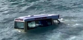 आईस्क्रीम व्हॅन समुद्रात वाहून गेली; पहा व्हिडीओ