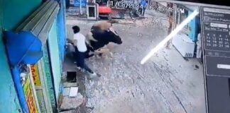 भररस्त्यात दोन भटक्या बैलांची झुंज, घटनेत एका तरुणाला दुखापत(Watch Video)