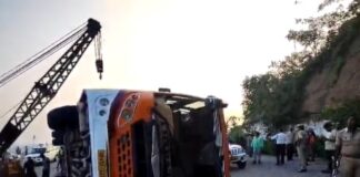 धक्कादायक! भरधाव बस पलटी झाल्याने तब्बल 44 प्रवाशी जखमी,पहा व्हिडीओ